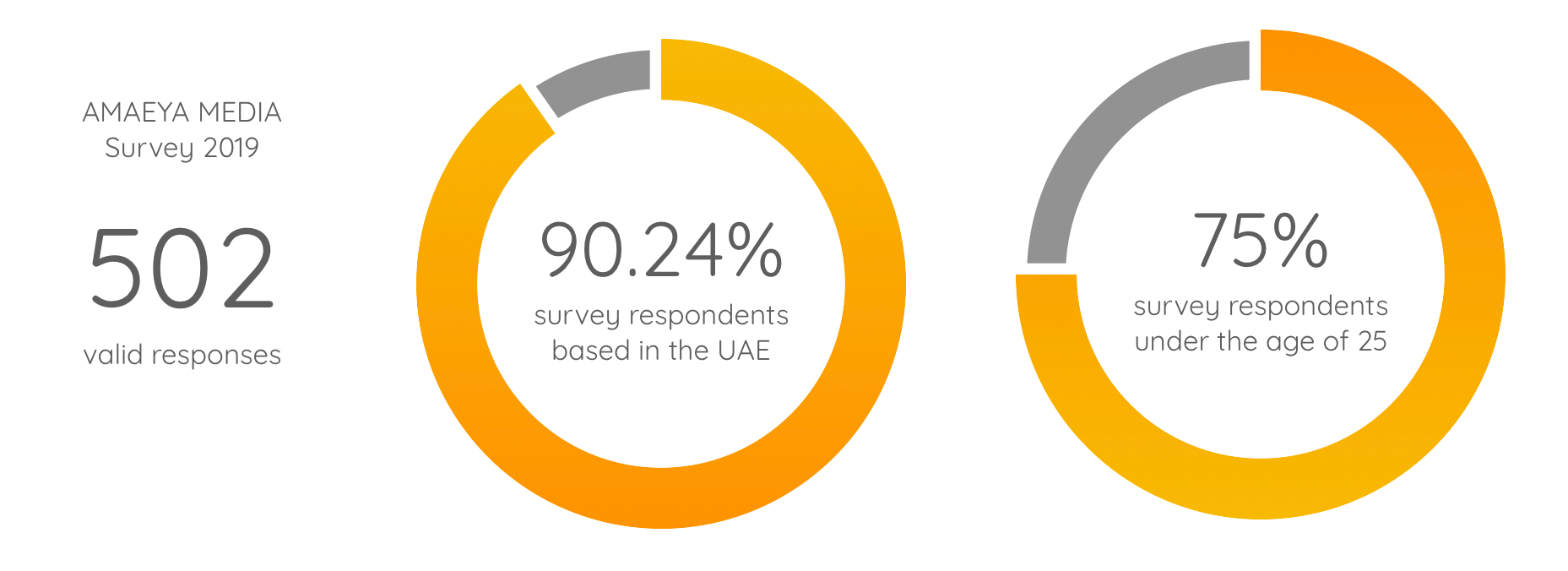 In an effort to address this gap, AMAEYA Media carried out a consumer survey to help better quantify local podcast preferences. 502 valid responses were received for the survey, which ran during November 2019. The survey was open to the general public but targeted residents of the United Arab Emirates, who formed 90% of the respondents who completed the survey.